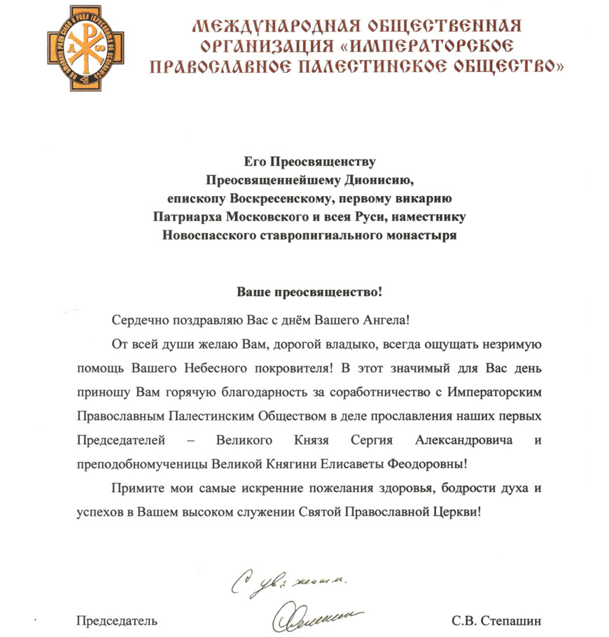 Председатель ИППО Сергей Степашин поздравил епископа Воскресенского Дионисия с этим знаменательным событием.