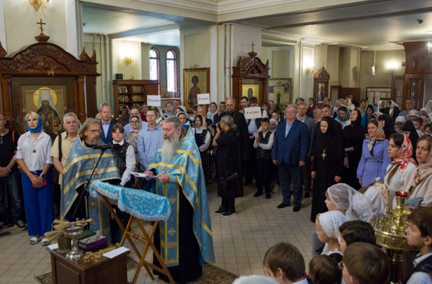 Мероприятие началось с молебна на начало учебного года, который проходил в Храме Алексия, Человека Божия.
