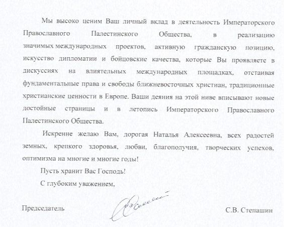 Сергей Степашин поздравил с юбилеем члена Совета ИППО Наталию Нарочницкую