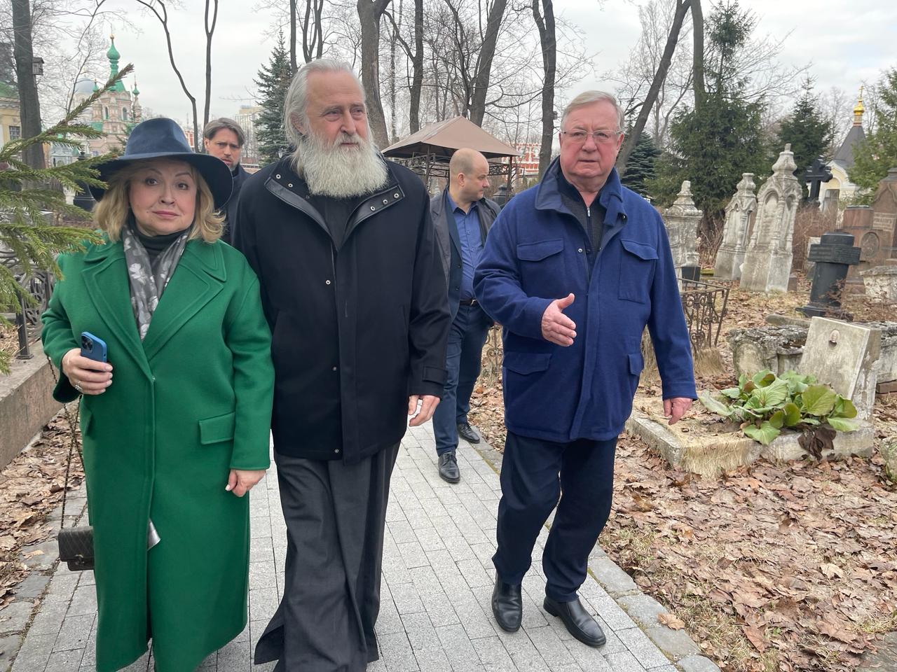 Вместе с владыкой Феогностом Сергей Степашин поклонился святым мощам святителя Тихона, молился возле иконы Донской Божией Матери. Далее участники встречи в сопровождении настоятеля монастыря побывали на территории Некрополя Донского монастыря, где упокоены многие известные представители московских дворянских фамилий, участники и герои Отечественной войны 1812 года, декабристы, философы, архитекторы, композиторы, известные исторические личности.