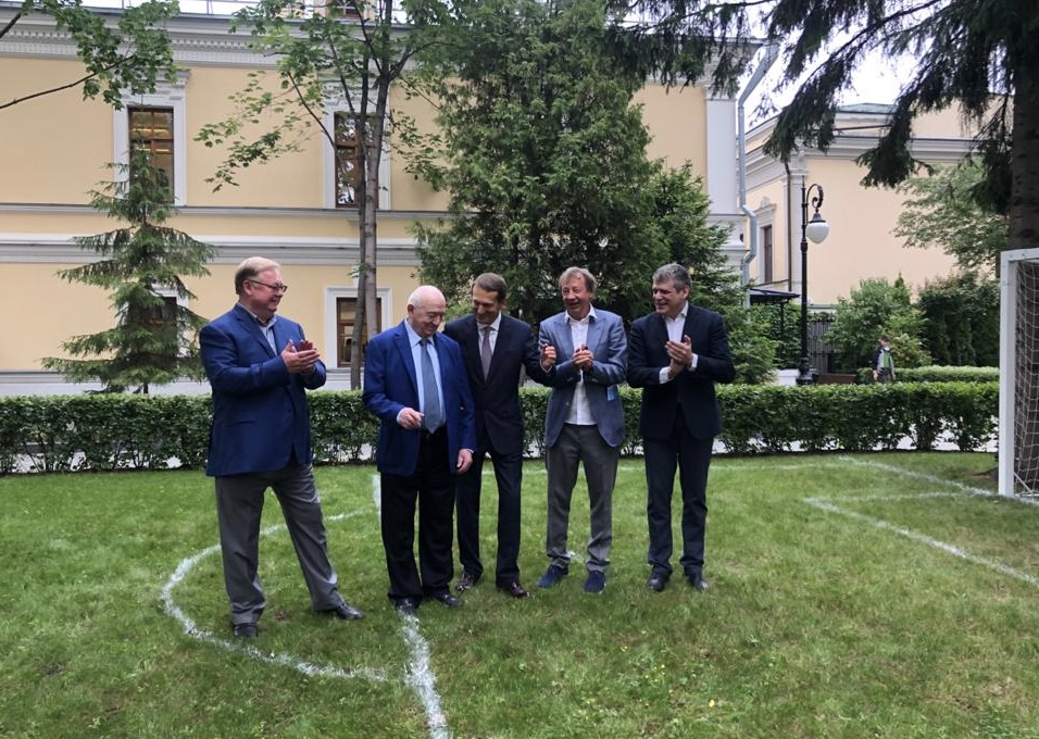 Также Нарышкин с первым вице-президентом Российского футбольного союза Никитой Симоняном, членом совета директоров "Динамо" Сергеем Степашиным, тренером Юрием Семиным и директором Государственного музея истории российской литературы Дмитрием Баком провели на лужайке рядом с Домом РИО символический розыгрыш мяча.