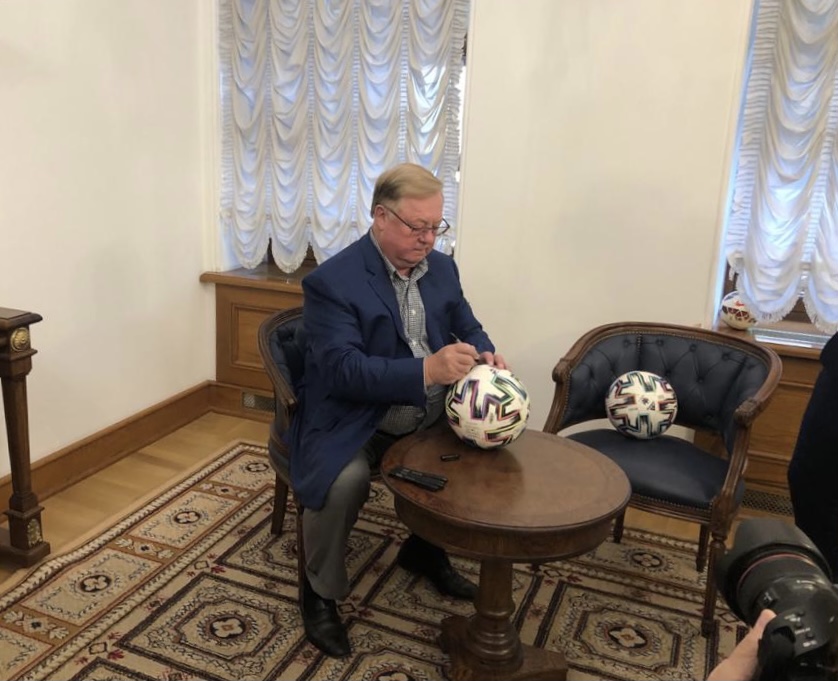 В заключении Сергей Степашин вручил Сергею Нарышкину памятный футбольный мяч с автографами участников церемонии открытия выставки.