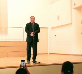 Следом выступил Сергей Степашин, президент Российского книжного союза. «Я тоже был школьником – и на стенах тоже висели портреты писателей, преимущественно в пожилом возрасте почему-то. Но давайте будет честны – многие свои произведения они написали молодыми. <…> Талант не знает возрастов. Но молодым талантам надо помогать. Нас сейчас отовсюду интернируют, я с удивлением узнал, что Гнесинка – уже не европейская консерватория. <…> Мне и всей стране нужны сейчас ваши честные слова. Храни вас Господь».