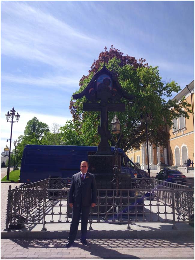Сергей Вадимович также поклонился кресту, установленному в память о Великом князе Сергии Александровиче. 4 мая исполнилась годовщина исторического события – в этот день год назад был торжественно освящён и открыт воссозданный на его историческом месте Крест-Памятник Великому Князю, первому Председателю ИППО.