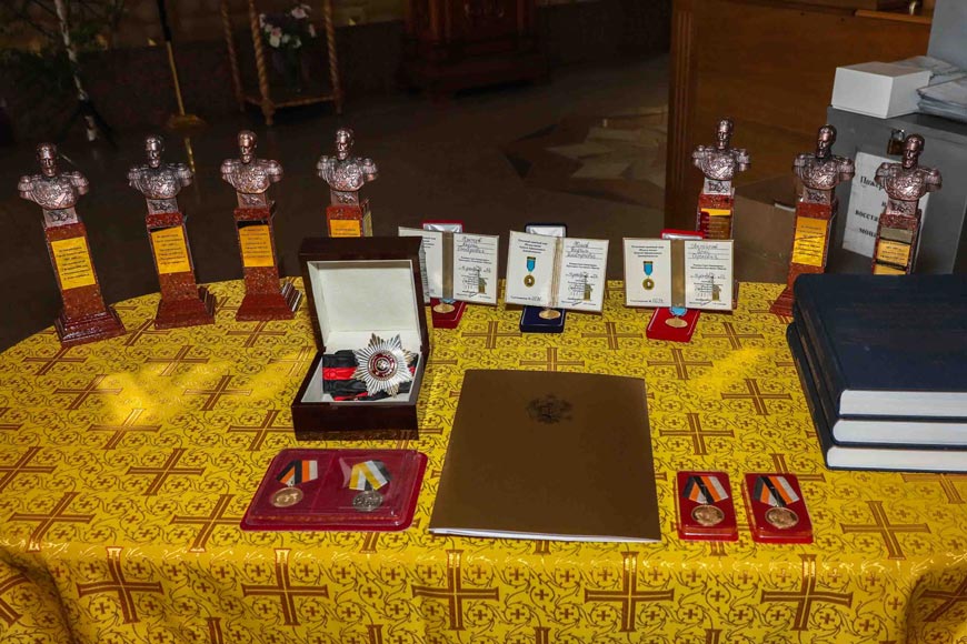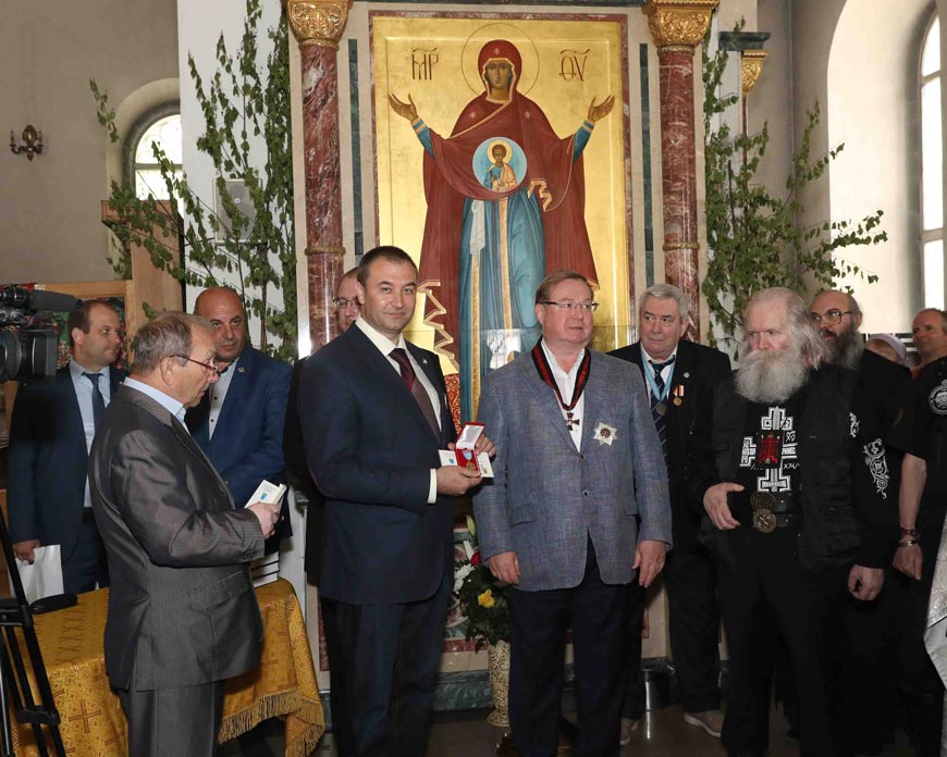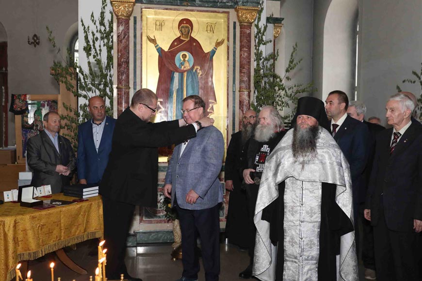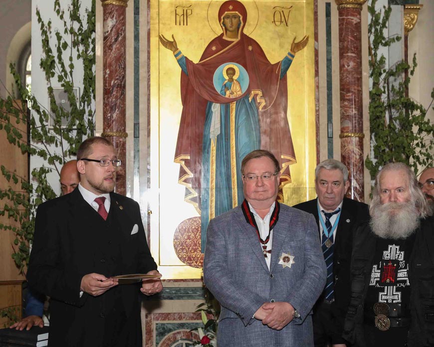 После в соборе состоялось торжественное награждение. Директор Канцелярии Главы Российского Императорского Дома Великой Княгини Марии Владимировны А. Н. Закатов вручил Председателю Императорского Православного Палестинского Общества Сергею Вадимовичу Степашину знаки Императорского Ордена Святого равноапостольного Великого князя Владимира II степени.