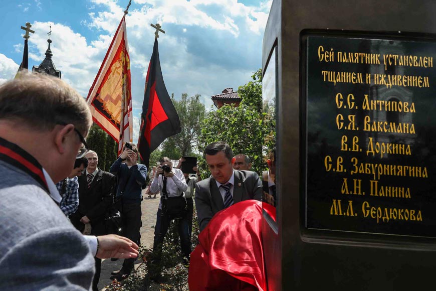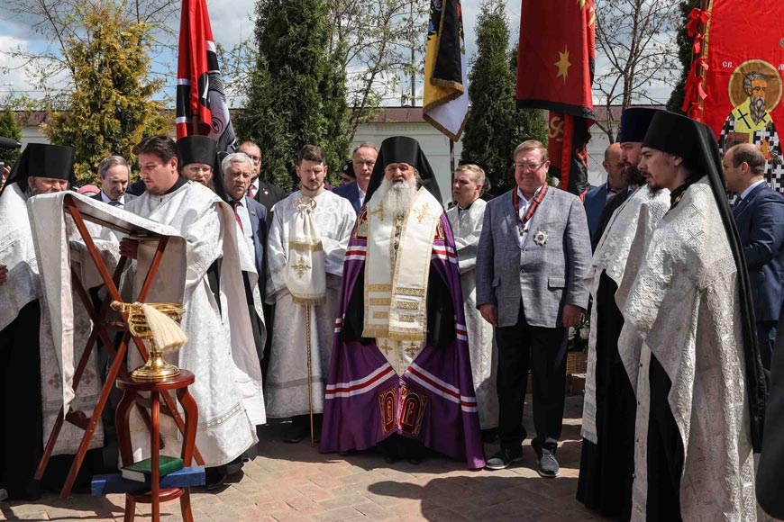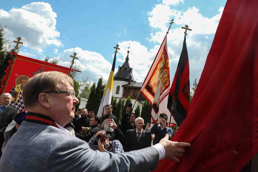 По благословению настоятеля обители в торжестве приняли участие члены Союза православных хоругвеносцев во главе со своим руководителем Леонидом Симонович-Никшичем. Хоругвеносцы уже на протяжении нескольких лет активно участвуют в различных мероприятиях: в крестных ходах на день памяти чудотворного образа «Лобзание Иисуса Христа Иудою», на дни памяти Святых Царственных Страстотерпцев, а также участвуют в торжествах открытия и освящения памятников.