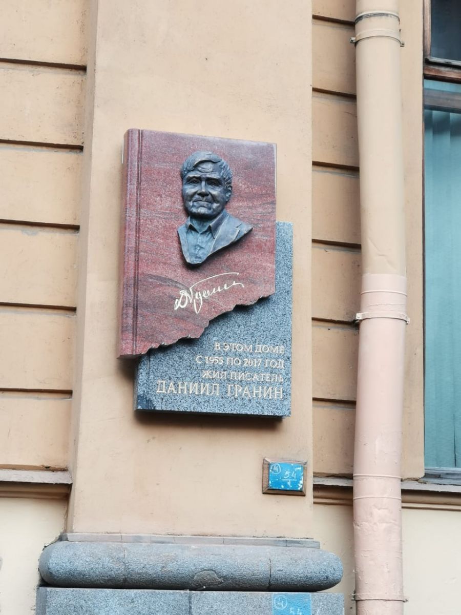 Первым мероприятием стало открытие мемориальной доски на доме № 8 на Малой Посадской улице, где Даниил Александрович жил с 1955 года. Здесь были написаны все его главные произведения. Этот адрес был хорошо знаком друзьям и знакомым писателя: коллегам по литературному цеху, учёным, деятелям культуры, политикам. Здание угловой формы, построенное в 1953 году в стиле сталинского классицизма с характерным закругленным фасадом, принято называть писательским домом. Здесь жили писатель-сказочник Евгений Шварц, автор повести «Республика ШКИД» Леонид Пантелеев, поэты-фронтовики Михаил Дудин и Сергей Орлов, в память которых на здании уже установлены мемориальные доски. Мемориальная доска Даниилу Александровичу продолжает историю этого дома и города Санкт-Петербурга.