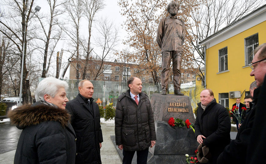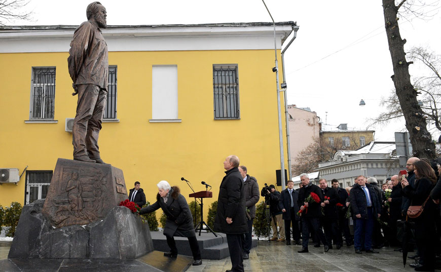 «Будучи в изгнании, Александр Исаевич никому не позволял пренебрежительно, зло говорить о своей Родине, противостоял любым проявлениям русофобии… Его сердце, душа, раздумья были наполнены одновременно и болью за Отечество, и безграничной любовью к нему» – сказал Владимир Путин.