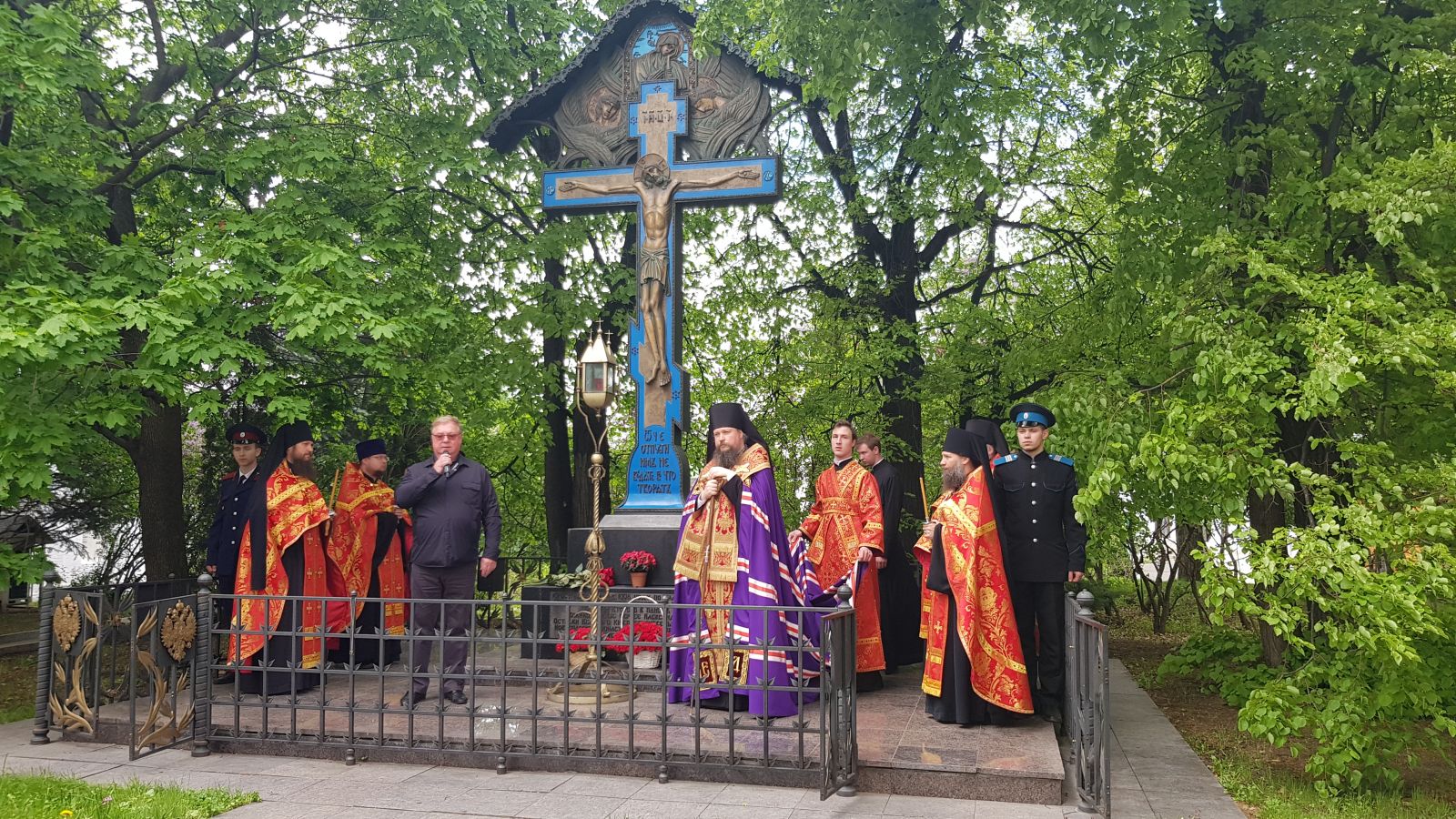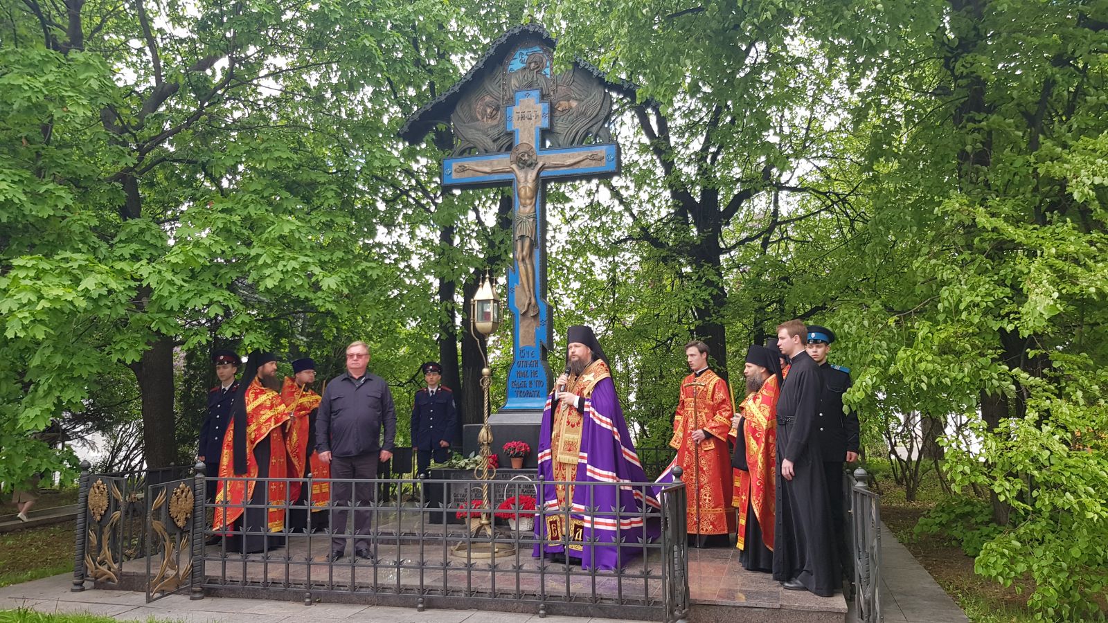 К Кресту-памятнику были возложены цветы, после чего епископ Дионисий сказал проникновенное слово в память о Великом князе Сергие Александровиче, который в сознании многих людей давно уже почитается православным святым.