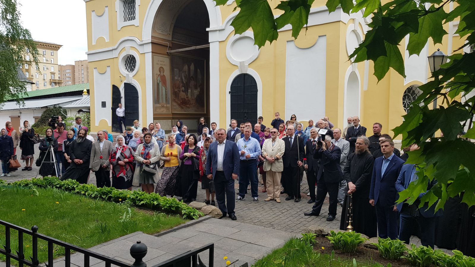 По окончании богослужения все его участники прошли к Кресту-памятнику Великому князю Сергию Александровичу на территории Новоспасской обители.