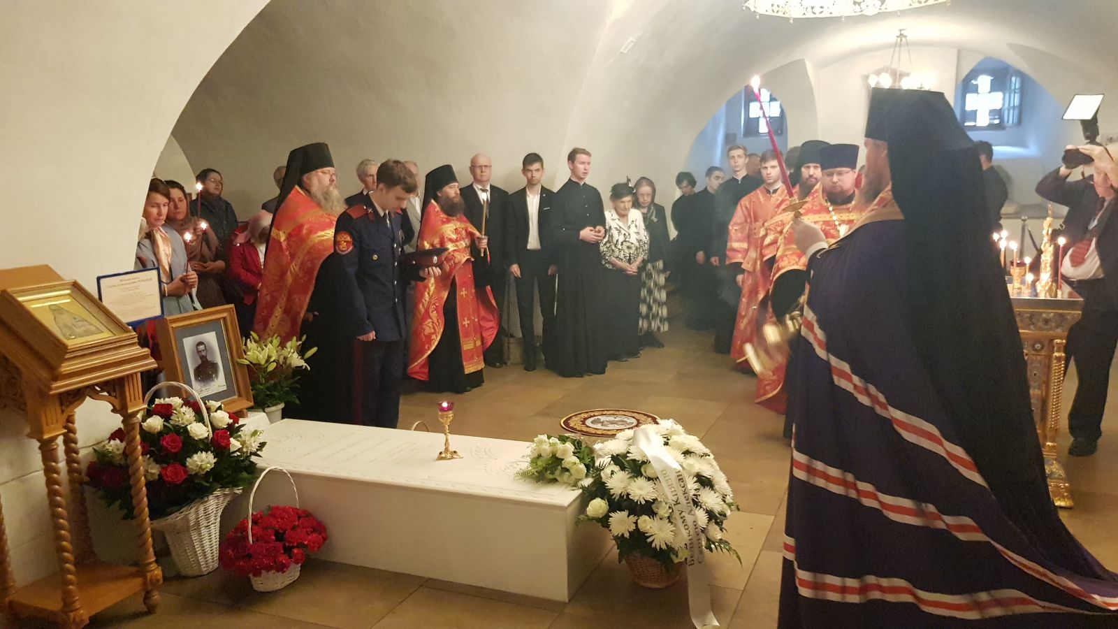 Богослужение на могиле Великого князя Сергия Александровича в храме-усыпальнице во имя преподобного Романа Сладкопевца возглавил наместник Новоспасского ставропигиального мужского монастыря епископ Воскресенский Дионисий, которому сослужили клирики обители. Богослужение посетили член Совета ИППО Григорий Гагарин, Ольга Николаевна Куликовская-Романова, многие действительные члены ИППО, представители Фонда «ЕСПО» и Сергиевского мемориального фонда, прихожане монастыря.
