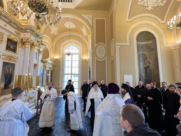 Здесь же был совершен молебен о здравии членов ИППО во имя преподобного Сергия Радонежского в Новоспасском монастыре.