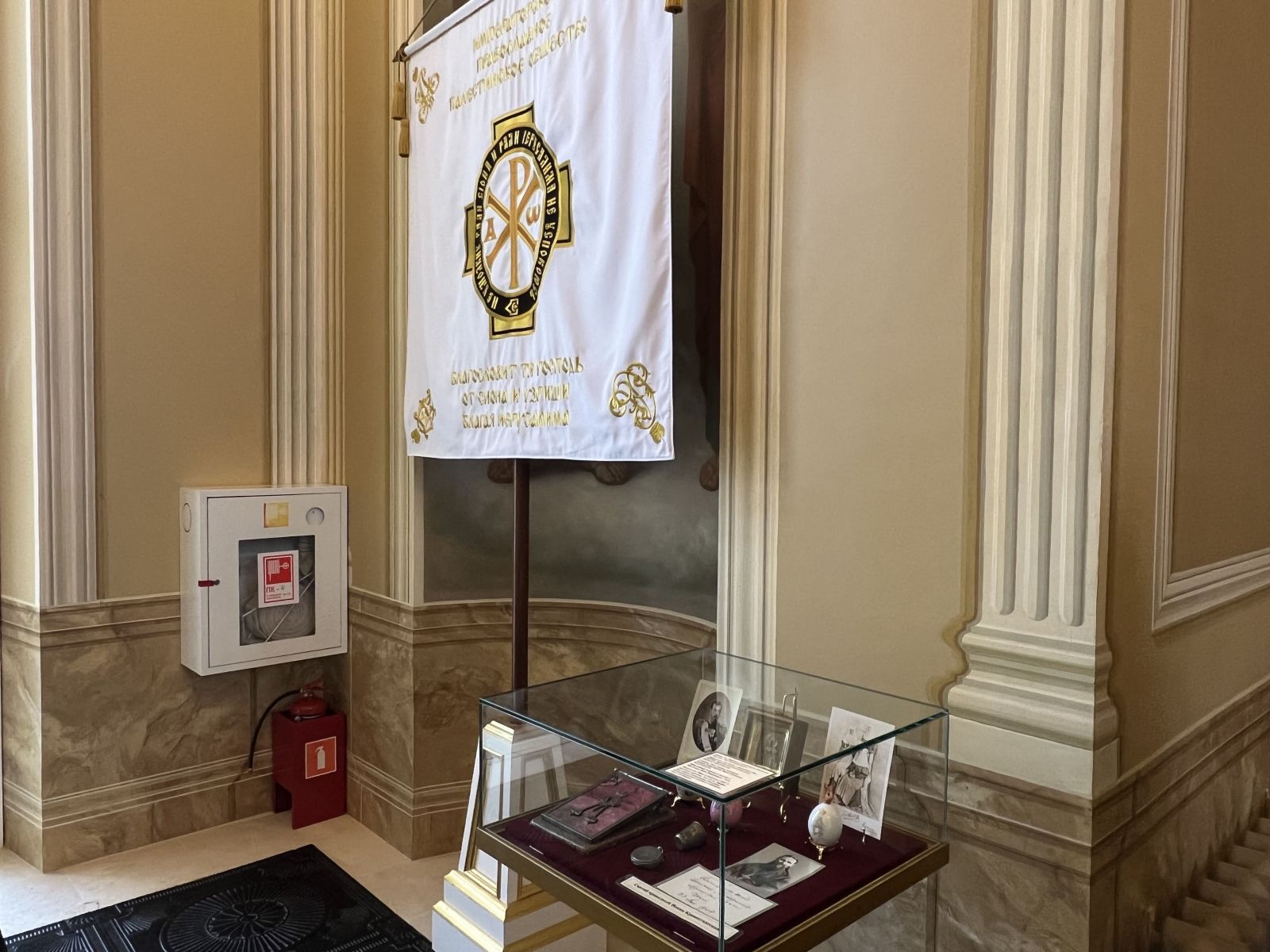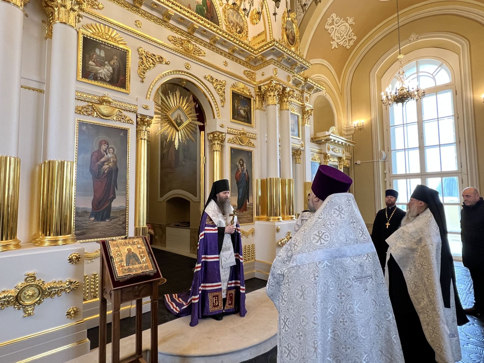 Затем делегация проследовала в Надвратный храм Новоспасского монастыря во имя преподобного Сергия Радонежского, который с декабря 2020 года носит статус домового храма Императорского Православного Палестинского Общества.