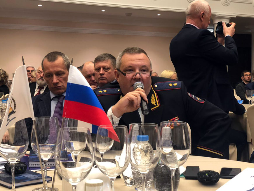 Приветственное слово зачитал председатель наблюдательного совета Всероссийской полицейской ассоциации генерал-полковник Сергей Степашин (бывший глава российского правительства, экс-директор ФСБ России, бывший глава Счётной палаты РФ). По его словам, сейчас мир сталкивается с новыми технологическими вызовами со стороны организованной преступности. И решить эту проблему строительством стен, как пытаются американцы, по словам Степашина, точно не получится. «Никакие стены не помешают координации преступников между собой», – указал он.