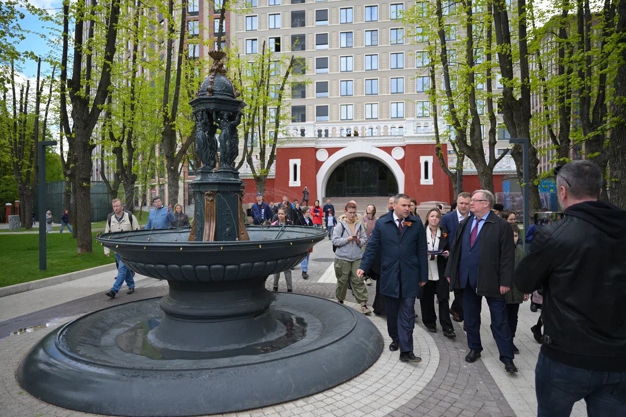 Еще одним открытием дня стала выставка «Строители Победы» в новой арт-галерее ARTBOX ETALON. Экспозиция рассказывает о тружениках тыла и сталинском ампире. Обзорная экскурсия по территории делового квартала позволила гостям оценить уникальное сочетание исторической промышленной архитектуры XIX века и современных бизнес-решений. Особое внимание привлек легендарный фонтан Уоллеса 1872 года — единственный в Москве.