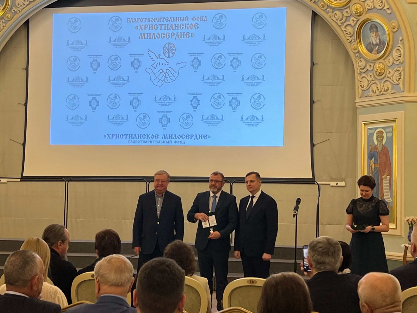 Затем в рамках приема состоялась торжественная церемония вручения медалей Благотворительного фонда. Награды вручили Председатель ИППО Сергей Степашин и председатель Координационного Совета Благотворительного фонда «Христианское милосердие», зампред ИППО Олег Шабуневич.