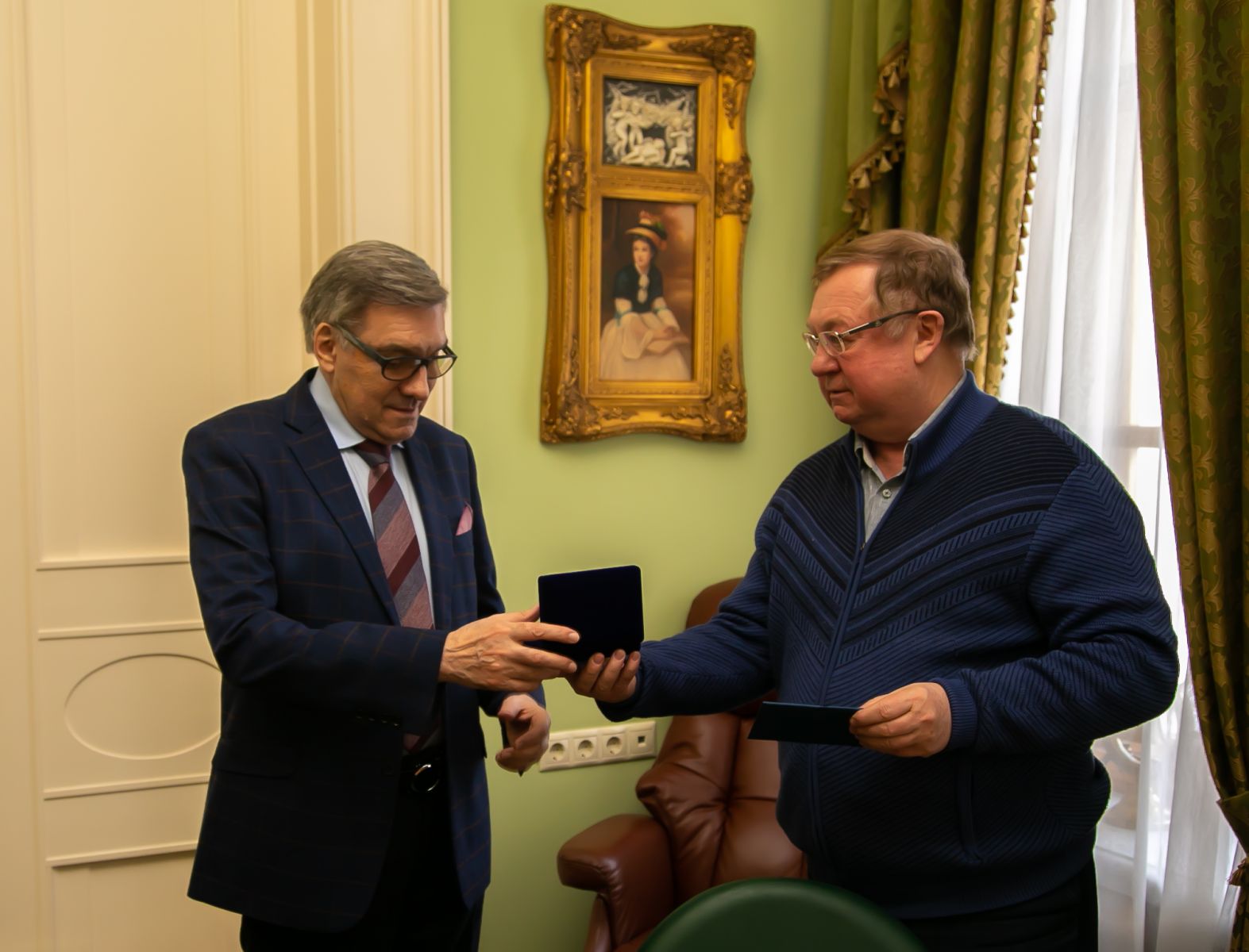 Сергей Степашин поздравил Льва Зиновьевича с прошедшим юбилеем, вручил ему орден Великого князя Сергия Александровича и памятный подарок.