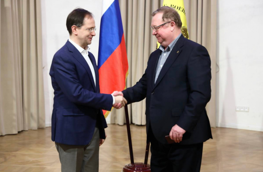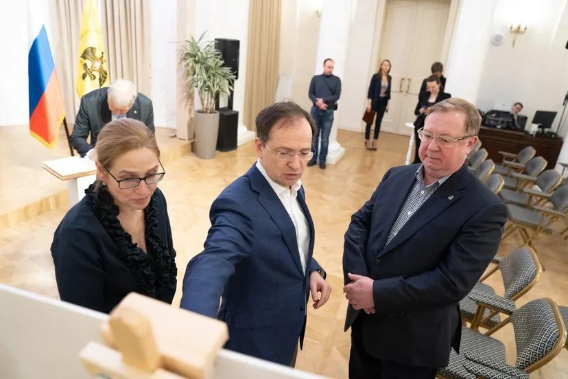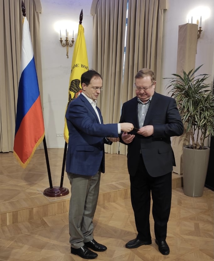 Знак и удостоверение Почетного члена Российского военно-исторического общества Председателю ИППО Сергею Степашину вручил Председатель РВИО Владимир Мединский.