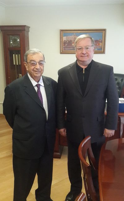 Сергей Вадимович поблагодарил Евгения Максимовича за его заинтересованное участие в деятельности Палестинского Общества, мудрые советы, авторитетную поддержку проектам ИППО и пожелал ему активного долголетия, бодрости духа, дальнейших творческих успехов.