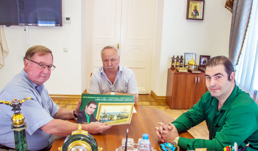 Художник-пейзажист Александр Шилов представил и передал в дар Председателю ИППО каталог одной из своих передвижных выставок «Наша Родина – Россия».