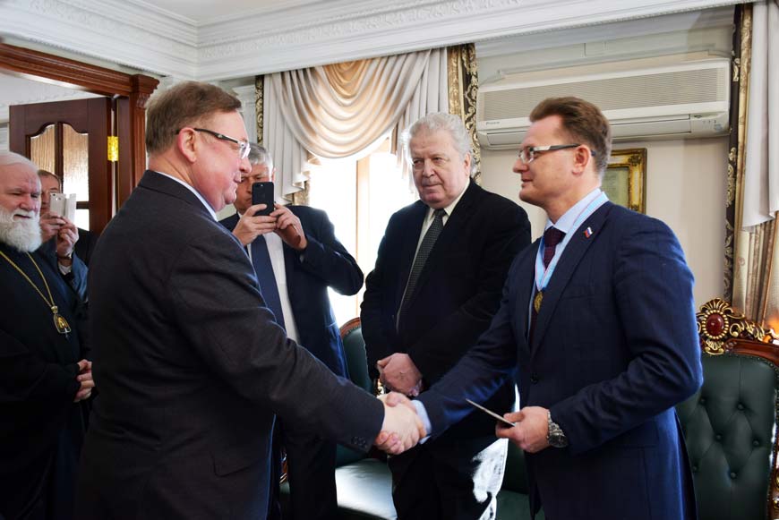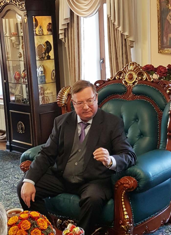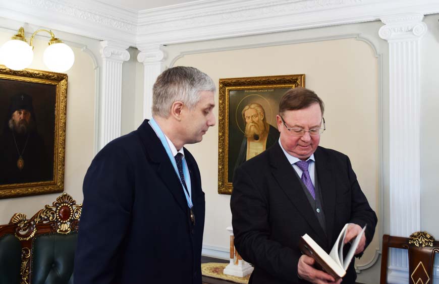Владыка Вадим поблагодарил Сергея Вадимовича Степашина за его неоценимый вклад в сохранение и приумножение русской духовности, за его титаническую работу по собиранию российской собственности на Святой Земле, всемерному содействию возобновления паломнических поездок в Российскую Палестину, огромную научно-просветительскую деятельность.