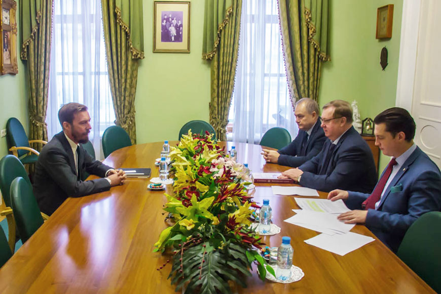 После встречи и.о. Управляющего делами ИППО Даниил Бурдыга и действительный член Общества Игорь Лапшин провели экскурсию для высокого гостя по Музею истории Императорского Православного Палестинского Общества.