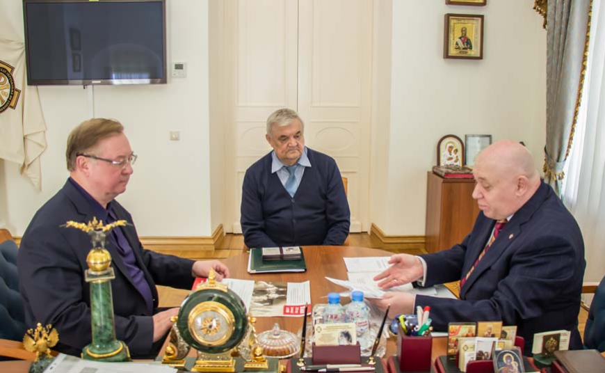 Сергей Олегович подробно рассказал о проделанной и предстоящей работе в текущем году, в том числе о мероприятиях, связанных со 120-летием Регионального отделения, которое будет отмечаться в сентябре этого года. Он пригласил Председателя ИППО на празднование этой даты и подарил ему только что выпущенную книгу, посвящённую юбилею Енисейского отделения ИППО, традиции которого продолжает нынешний состав Регионального отделения Общества.