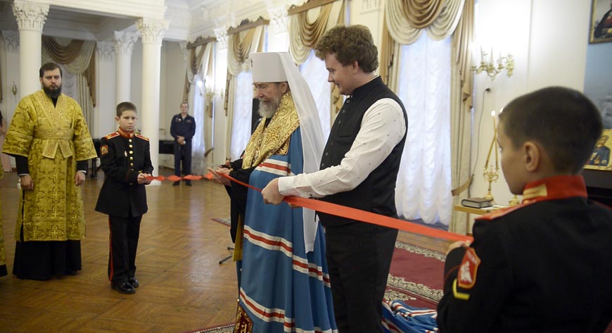 Перед открытием выставки митрополит Симбирский и Новоспасский Анастасий совершил молебен перед иконой святого праведного воина Феодора Ушакова. После молебна Владыка сказал: «Сегодня мы много говорим о патриотизме и о том, что нужно делать, чтобы жизнь в нашей стране была благополучной. Давайте обратимся к опыту наших предков. Они имели твёрдое упование на Бога и свою жизнь посвящали служению Богу. Благодаря этому наше Отечество процветало. Прибытие образа святого праведного воина Феодора Ушакова – знаковое событие для нашего края. Мы видим, что Господь печётся о нашем граде и о каждом из нас. Господь хочет, чтобы мы изучали и подражали жизненному пути наших святых. Святой Феодор Ушаков был прекрасным воином и искренним молитвенником. Приглашаю всех приходить помолиться перед образом святого праведного воина Феодора Ушакова и попросить его благословений. Пусть по его святым молитвам наша жизнь наполнится радостью о Духе Святом и осознанием того, что мы не одиноки в этом мире. У нас есть наши духовные покровители – святые воины и подвижники, которые молятся за нашу землю и помогают нам в нашей повседневной жизни. Пусть Господь благословит людей, чьими стараниями это прекрасное начинание воплотилось в жизнь».
