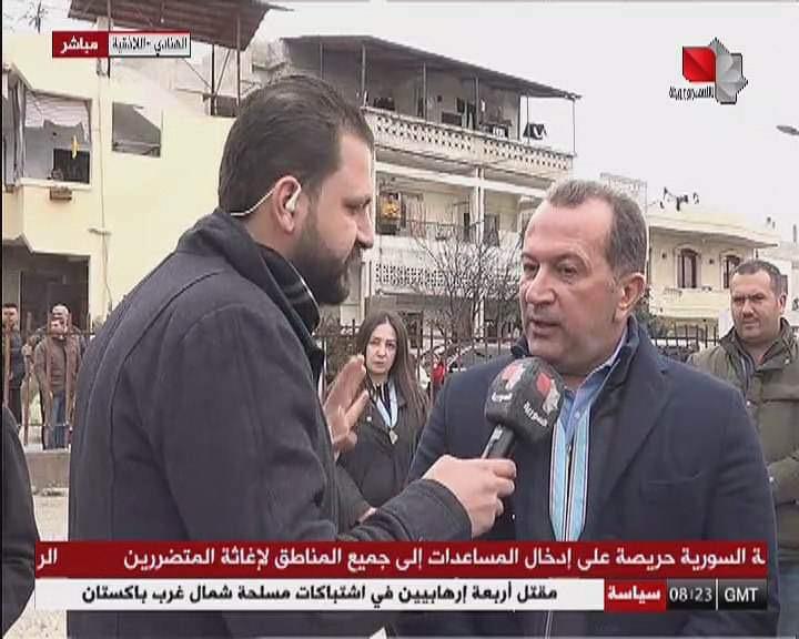 Выступая по национальному телевидению, Мишель Аль-Телли выразил благодарность народу и руководству России за помощь сирийскому народу, также он рассказал о планах поездок в другие пострадавшие населенные пункты.