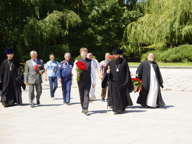 Мероприятие началось с посещения храма Всех Святых на Мамаевом кургане, где была отслужена заупокойная лития в память о воинах, отдавших свои жизни за освобождение Отечества.