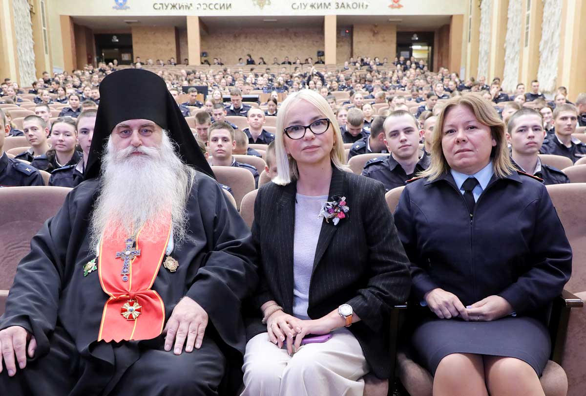 Ведущая презентации, заместитель начальника отдела морально-психологического обеспечения, начальник отделения воспитательной работы Нижегородской Академии МВД России подполковник полиции А.В. Кучинская пригласила на сцену архимандрита Тихона (Затёкина), поздравив его с днём тезоименитства – памятью Святителя Тихона, Патриарха Московского и всея России. Курсанты и слушатели с неподдельным интересом выслушали рассказ архимандрита Тихона.