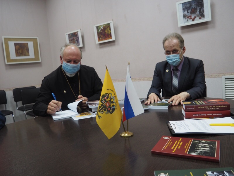 В завершение мероприятия отцу Димитрию Сазонову были переданы книги о церковной истории и истории России, изданные при поддержке «Двуглавого Орла».
