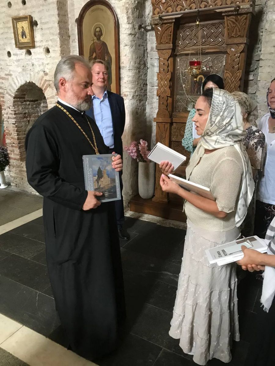 Кроме того, Инна Баталова подарила настоятелю храма в Коложе книгу, посвящённую 140-летию ИППО, а также икону преподобномученицы Великой княгини Елизаветы Феодоровны.