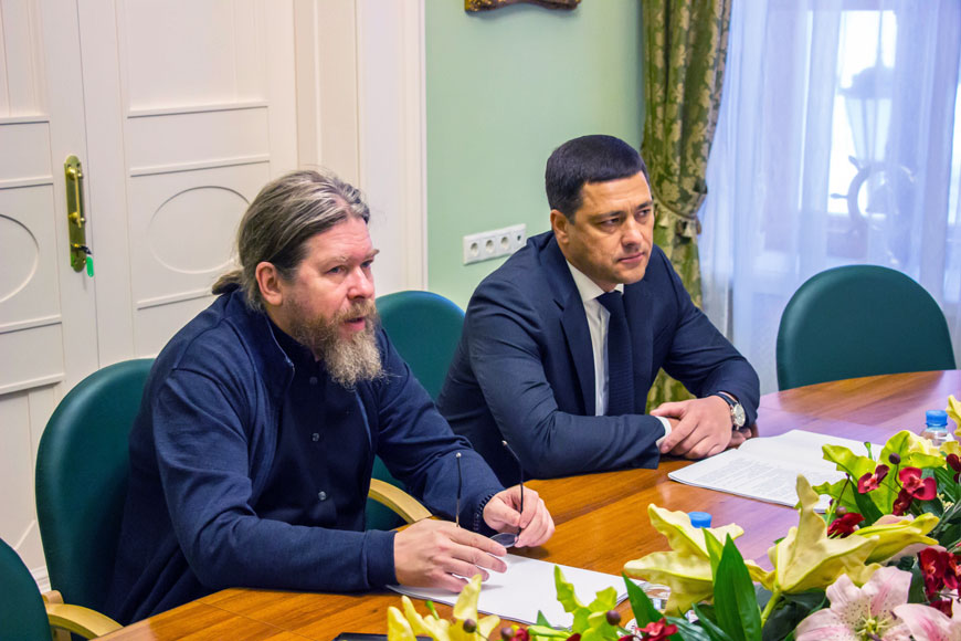 29 января в Центре ИППО состоялась встреча Председателя Общества Сергея Степашина с председателем Патриаршего совета по культуре митрополитом Псковским и Порховским Тихоном (Шевкуновым) и губернатором Псковской области Михаилом Ведерниковым.