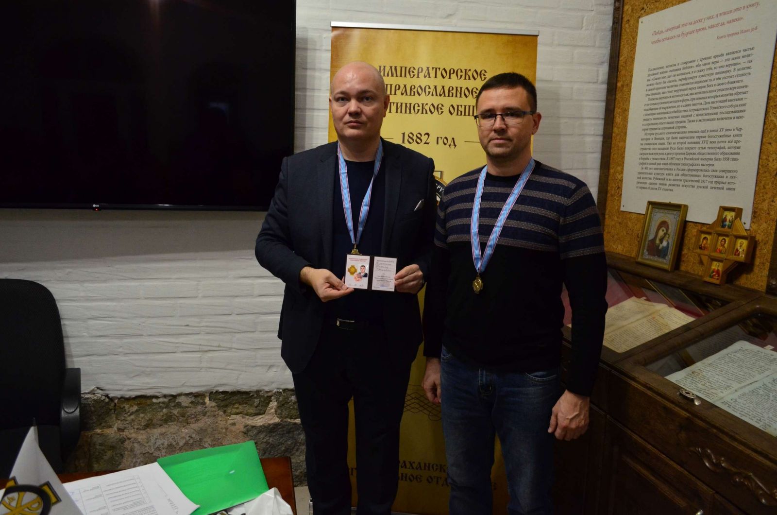 Собрание, по традиции, началось с вручения членских билетов вступившим в этом году в ряды действительных членов ИППО. Кроме того, по поручению председателя Общества Сергея Степашина протоиерею Дионисию (Фокину), руководителю отдела по взаимодействию Церкви с обществом и СМИ Астраханской епархии, действительному члену ИППО, была вручена медаль имени В.Н. Хитрово. Со словами благодарности в адрес отца Дионисия выступил руководитель регионального отделения ИППО Александр Соловьев, поблагодарив его за содействие в работе и поддержку в реализуемых проектах.