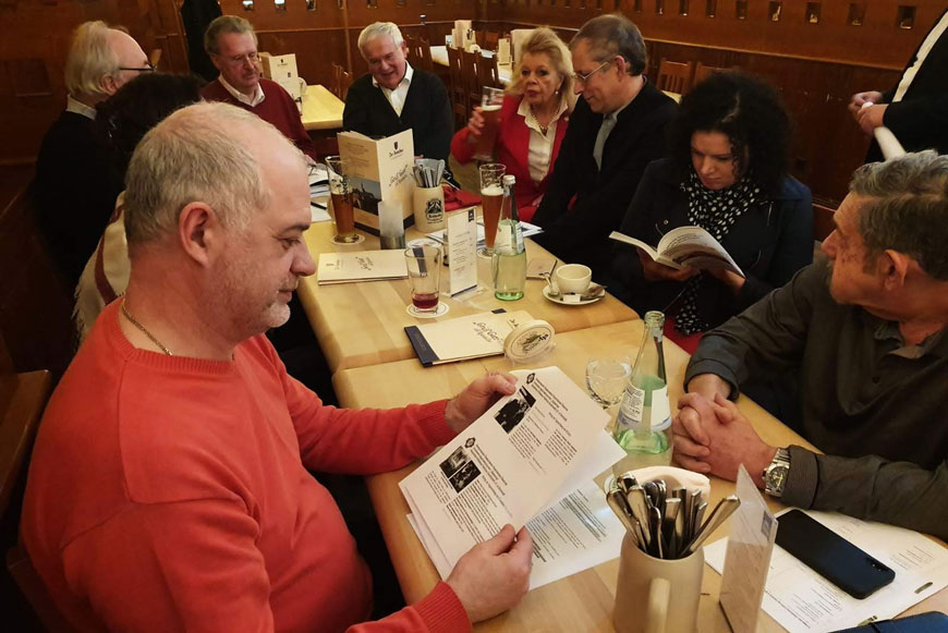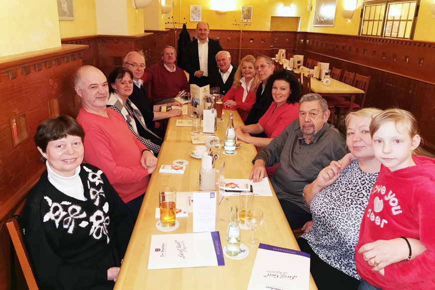 С докладом выступил руководитель Представительства ИППО в Дармштадте Денис Судобин. Он поблагодарил действительных членов и друзей Общества за проведённую работу, в особенности за реализацию проектов Гессенского Представительства в Дармштадте, и рассказал присутствующим об итогах деятельности Представительства ИППО в 2019 году.