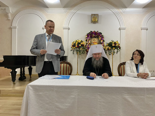 Благодарственный молебен в храме святителя Николая Чудотворца возглавил митрополит Екатеринбургский и Верхотурский Евгений, действительный член ИППО. После молитвы и архипастырского благословения участники мероприятия продолжили в конференц-зале.