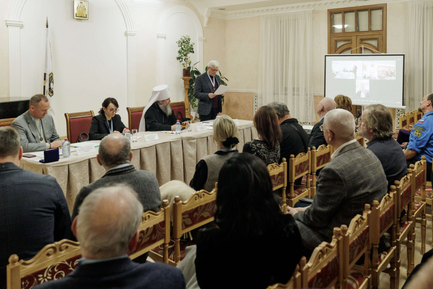 Заседание началось с молебна в Никольском храме, который возглавил действительный член ИППО митрополит Екатеринбургский и Верхотурский Евгений.