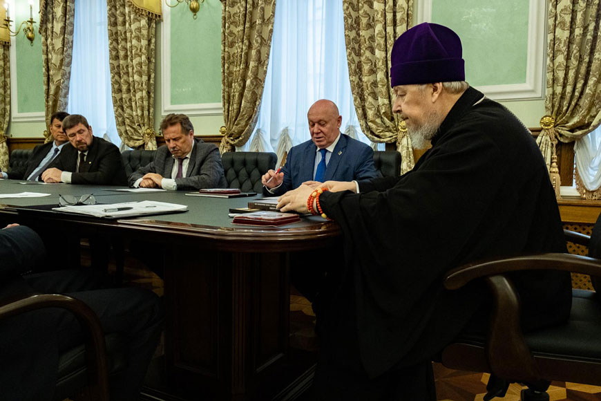 В завершение встречи председатель Красноярской региональной общественной организации Общероссийской общественной организации «Всероссийское общество спасания на водах» Андрей Мельников вручил владыке Пантелеимону медаль в честь 145-летнего юбилея организации.