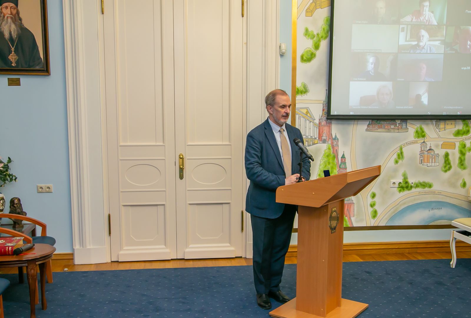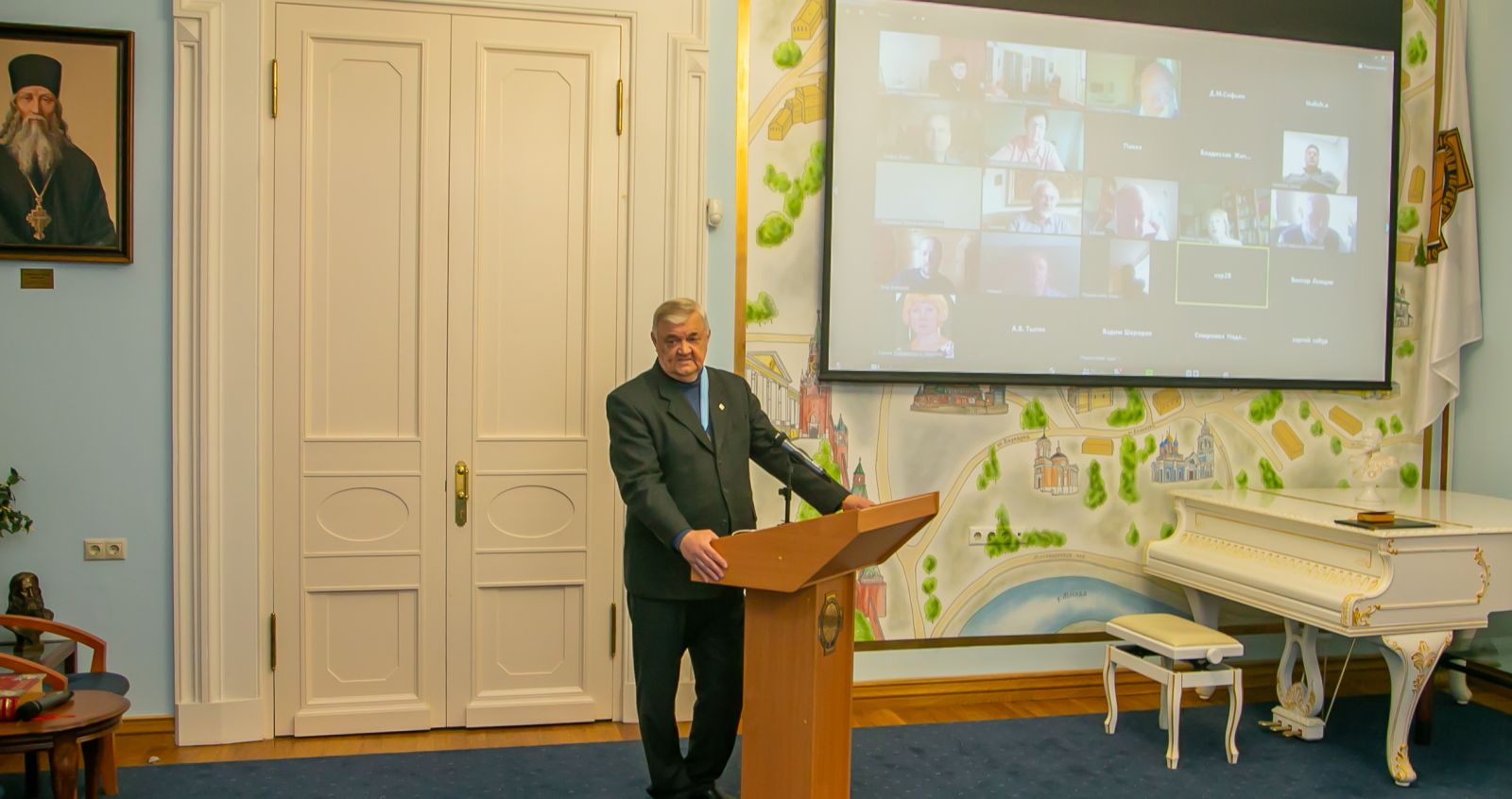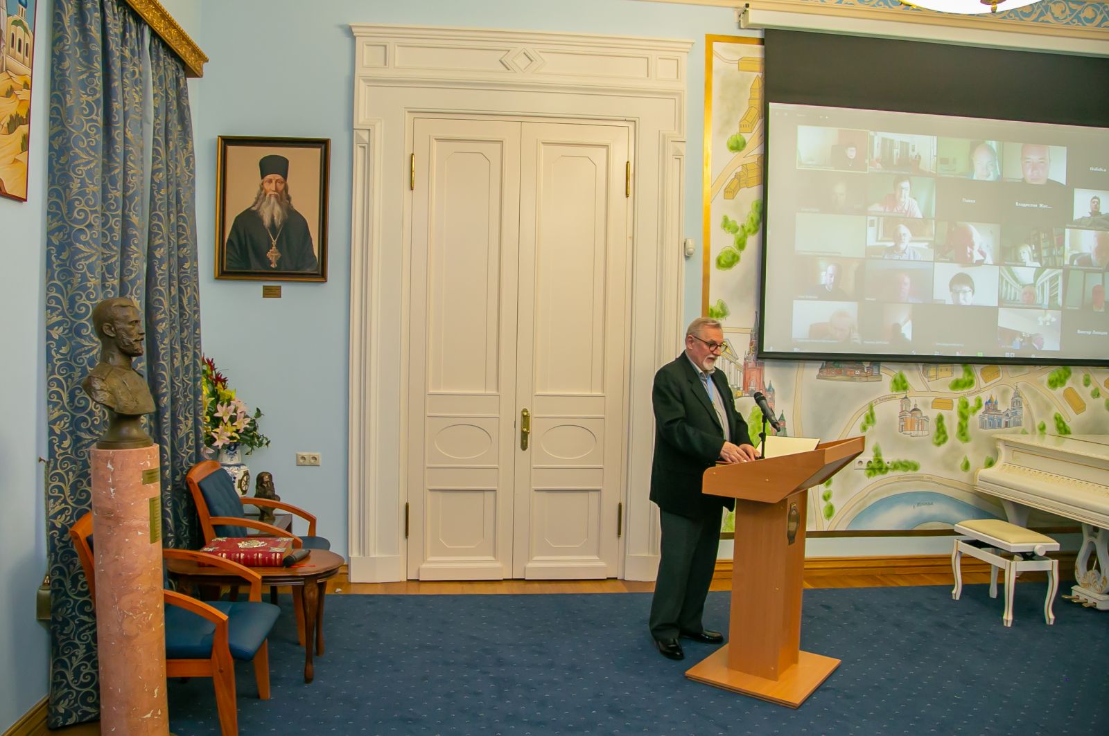 Затем выступил заместитель руководителя Научной секции Общества Сергей Житенёв с докладом на тему «Новейшая история Императорского Православного Палестинского Общества и вопросы развития его деятельности в условиях пандемии».