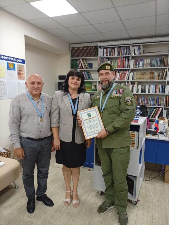 За организацию и проведение выставки «Народные художники России – новым территориям» Благодарности Главы администрации Мангушского муниципального округа вручены действительным членам ИППО Самвелу Казаряну, Людмиле Лимаренко, Ирине Аксеновой, Сергею Исакову, Сергею Михайлову (позывной «Славян»), Владимиру Васильеву.