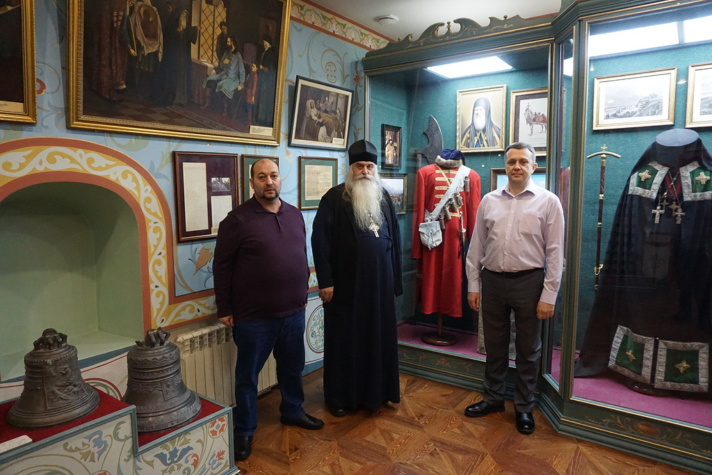 После осмотра залов музея архимандрит Тихон (Затекин), Александр Панин и Семен Ваксман провели рабочее совещание, на котором обсудили предстоящие мероприятия, запланированные на 2023 год.