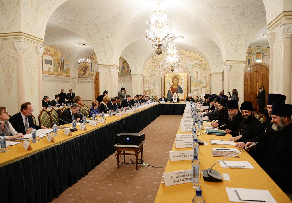 Открывая заседание, Святейший Патриарх Московский и всея Руси Кирилл обратился к собравшимся со словом.
