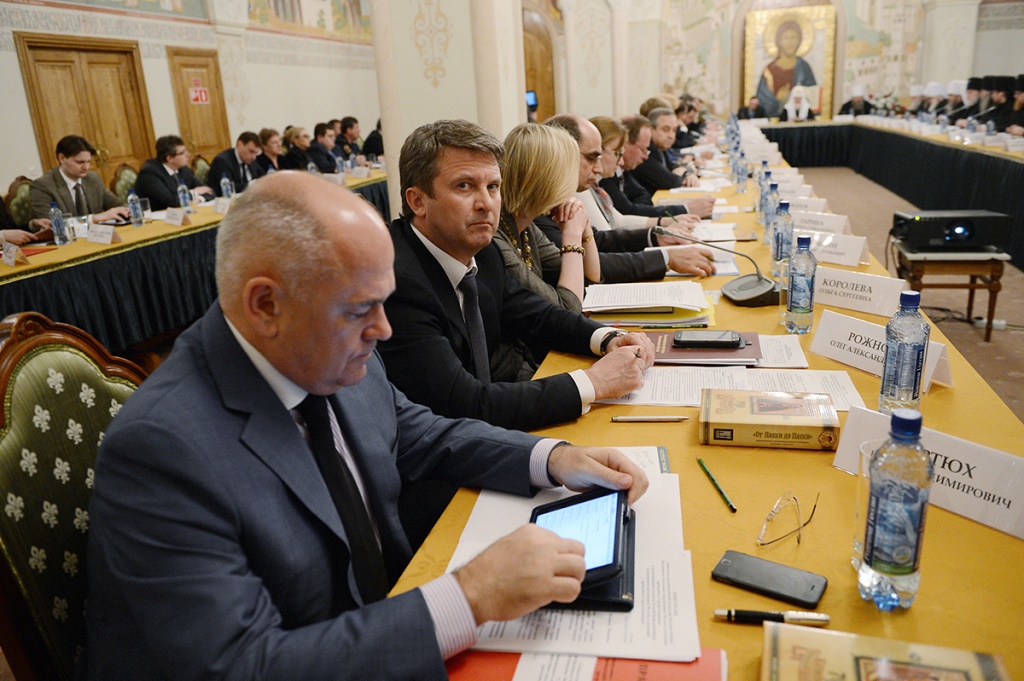 Также выступили директор Департамента государственной политики в сфере воспитания детей и молодежи Министерства образования и науки РФ А.Э. Страдзе, председатель Финансово-хозяйственного управления Московского Патриархата епископ Подольский Тихон, наместник Свято-Троицкой Сергиевой лавры архиепископ Сергиево-Посадский Феогност и председатель Комитета Государственной Думы ФС РФ по делам Содружества Независимых Государств и связям с соотечественниками Л.Э. Слуцкий.