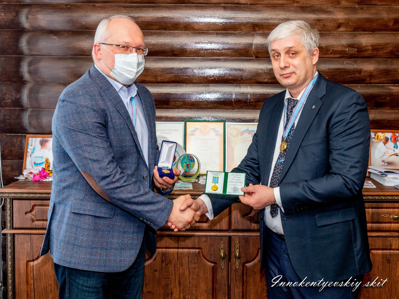 В завершение заседания руководитель регионального отделения Сергей Зыков вручил Почётный памятный знак «Медаль имени Марии Михайловны Киселёвой» члену Общества главному врачу «Медсанчасть ИАПО» Евгению Выговскому за вклад в дело организации помощи больным, бедным и обездоленным людям.