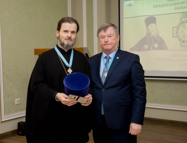 Руководитель регионального отделения Александр Брюханов вручил почетные грамоты и благодарственные письма ИППО, а также регионального отделения Общества. Был вручен членский билет новому члену отделения и памятный знак имени архимандрита Антонина (Капустиана) Валерию Мурзину за активную деятельность в Курганском отделении ИППО.