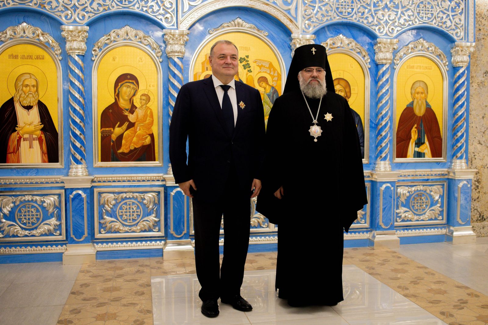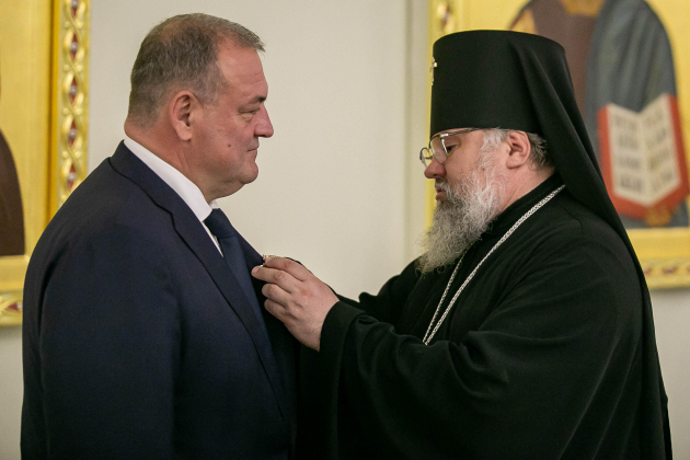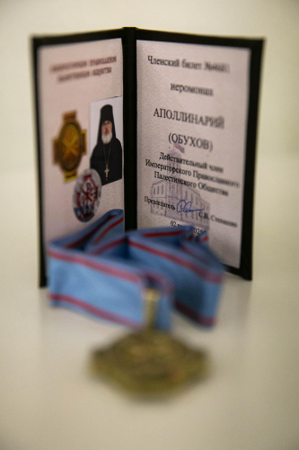 Архиепископ Никанор вручил знак и удостоверение действительного члена Императорского Православного Палестинского Общества иеромонаху Аполлинарию (Обухову), руководителю Административного секретариата Южно-Сахалинской и Курильской епархии.