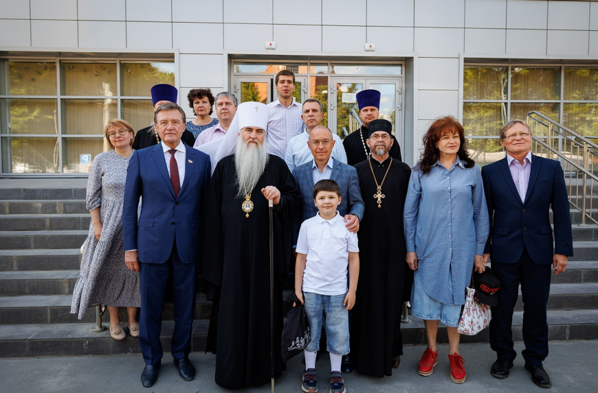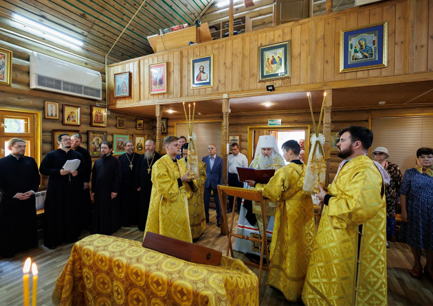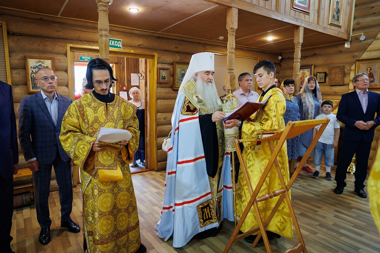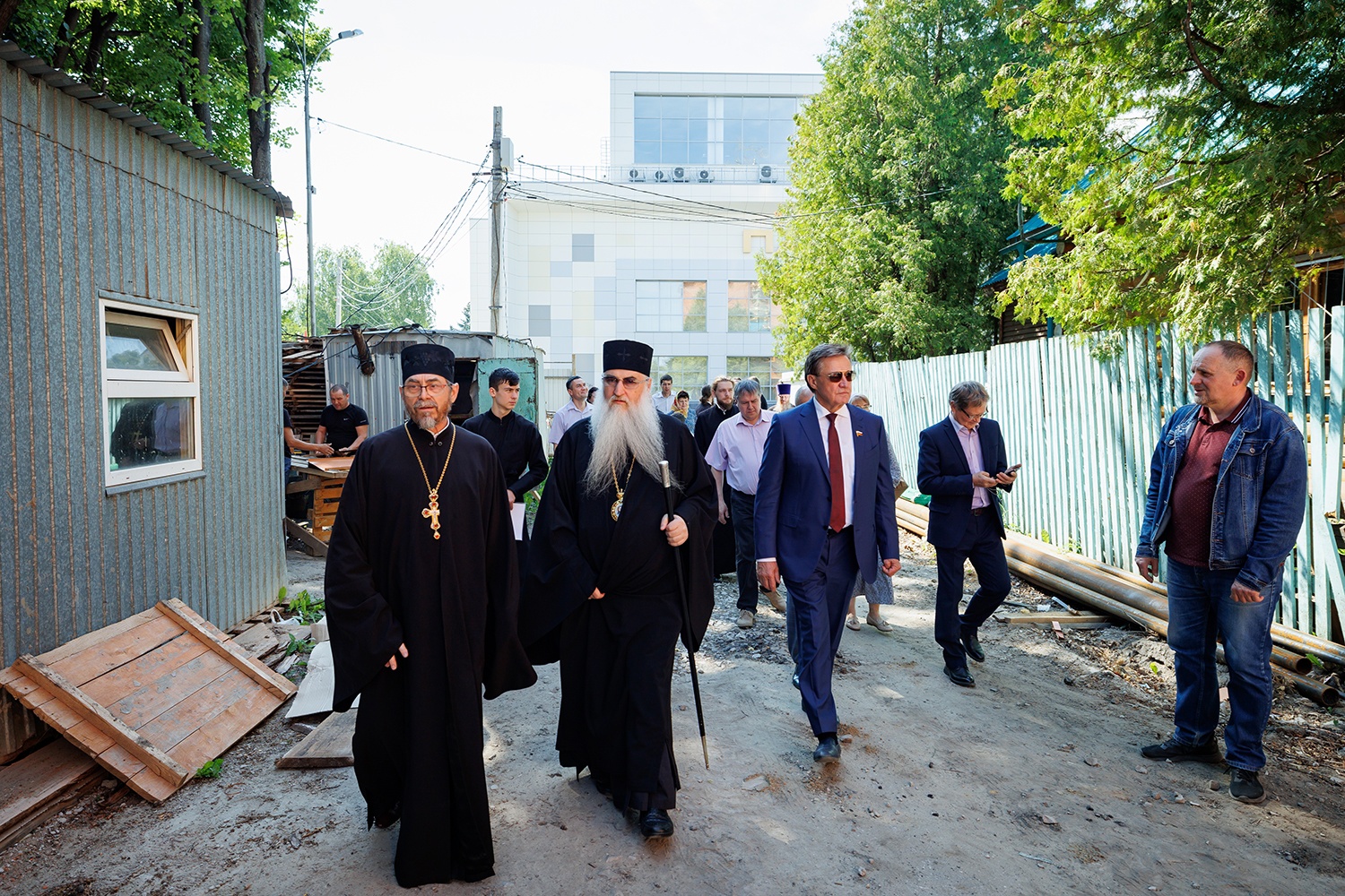 В начале действительный член Симбирского отделения ИППО митрополит Симбирский и Новоспасский Лонгин совершил молебен на начало благого дела во временном деревянном храме во имя святого благоверного великого князя Александра Невского.
