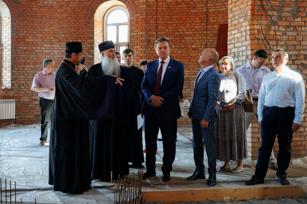 Участники встречи посетили строящийся Александро-Невский храм. Настоятель протоиерей Сергий Ефремов рассказал о том, что сделано и какие работы ведутся в храме сегодня. В настоящее время проводится монтаж коммуникаций, ведется подготовка к внутренним отделочным работам. Храм строится при активной поддержке членов Симбирского отделения ИППО под кураторством Председателя ИППО Сергея Степашина и члена Совета Общества Сергея Рябухина. Строительство храма Александра Невского, а также создание полноценного историко-патриотического центра духовно-нравственного воспитания на базе Центра креативных компетенций «Патриот» и парка «Семья» является одной из приоритетных задач регионального отделения ИППО.
