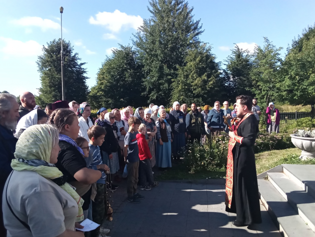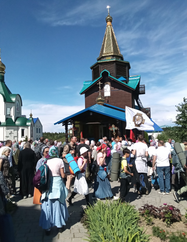 Крестноходцы почтили память царственных страстотерпцев (17 июля) ‒ приняли участие в Божественной литургии в храме в честь святых благоверных князя Димитрия Донского и княгини Евдокии Московской. У скульптурной композиции «Врата. Крестный ход», как и в прошлые годы, отслужен молебен и проведено символическое посвящение в паломники.